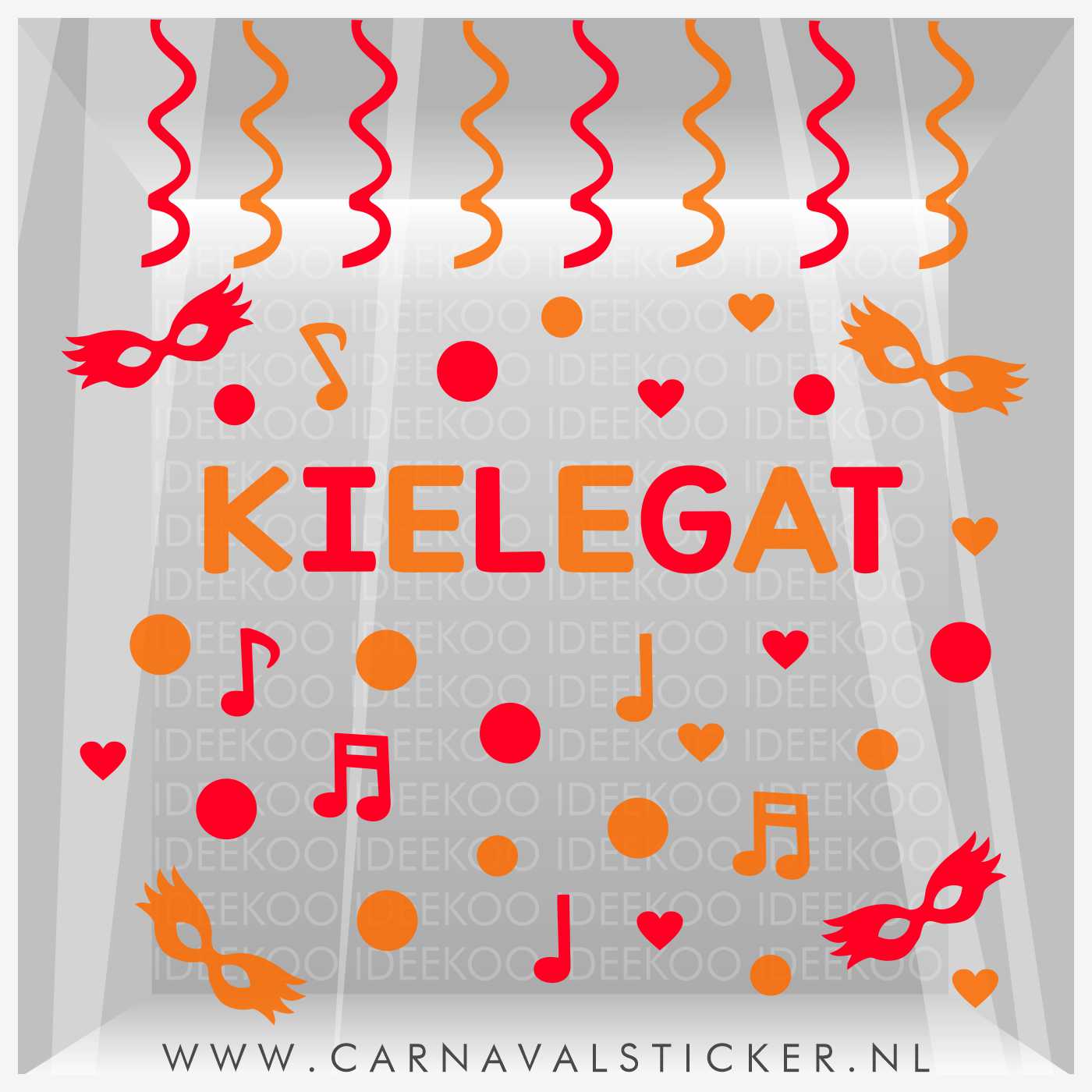 Herbruikbare raamsticker carnavalsticker Kielegat versierset, gemaakt van statisch vinyl.