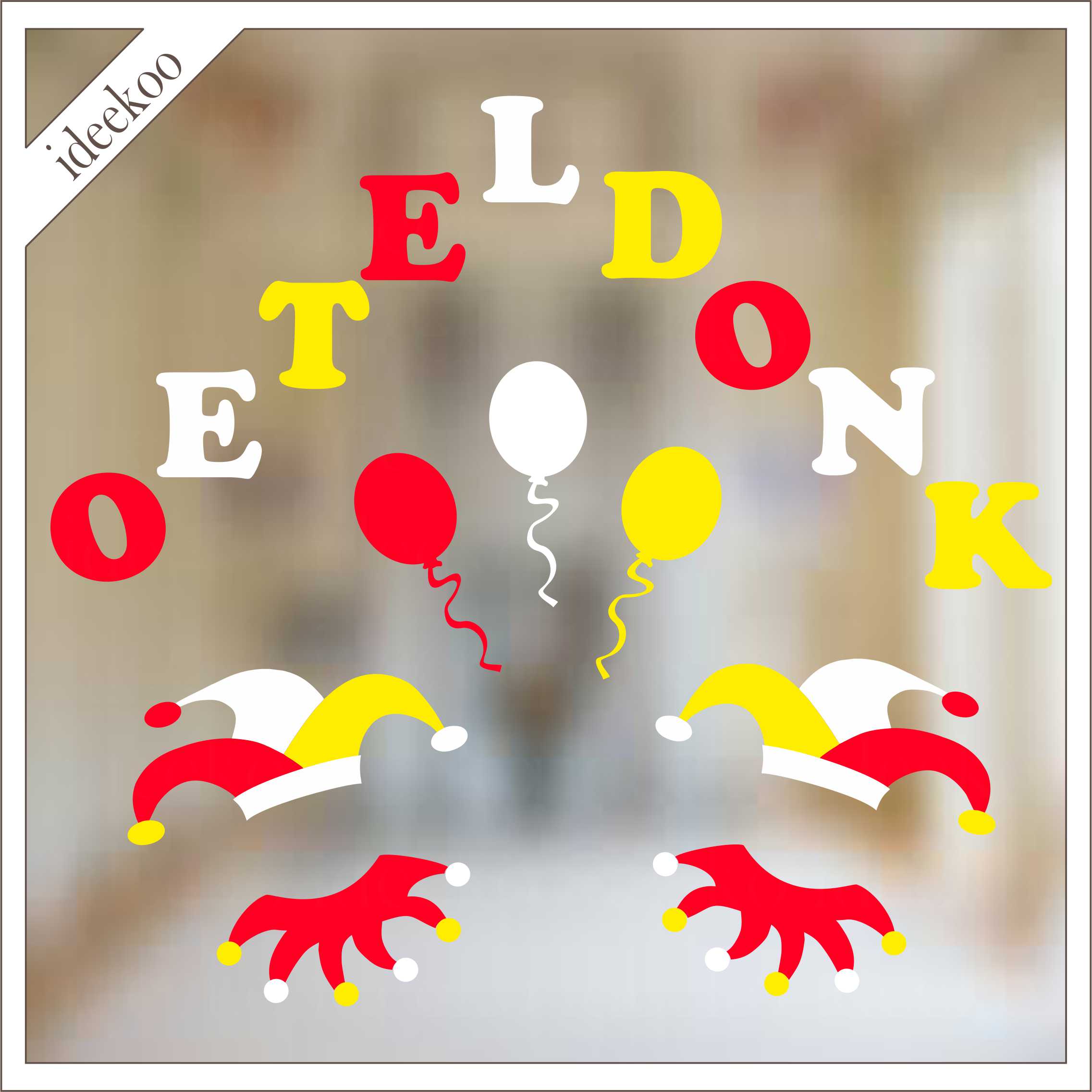 Herbruikbare raamsticker carnaval oeteldonk nar gemaakt van statisch vinyl.