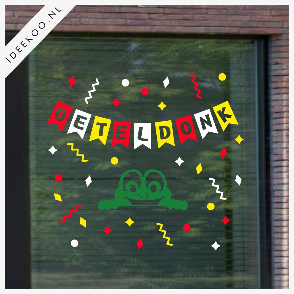 Herbruikbare raamsticker Carnaval sticker Oeteldonk vlaggenlijn kikker gemaakt van statisch vinyl.